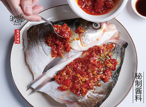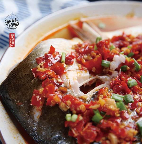 湘味传统经典名菜,起源于300年前的清雍正年间。 以花鲶鱼头、剁椒为主料,配以豉油、姜、葱、蒜等辅料蒸制而成。 本品内容物含花鲶鱼头、剁椒料包、调味汁包。 菜品色泽红亮、味浓、肉质细嫩。肥而不腻、口感软糯、鲜辣适口。 本品已通过中国QS和美国FDA食品检测。