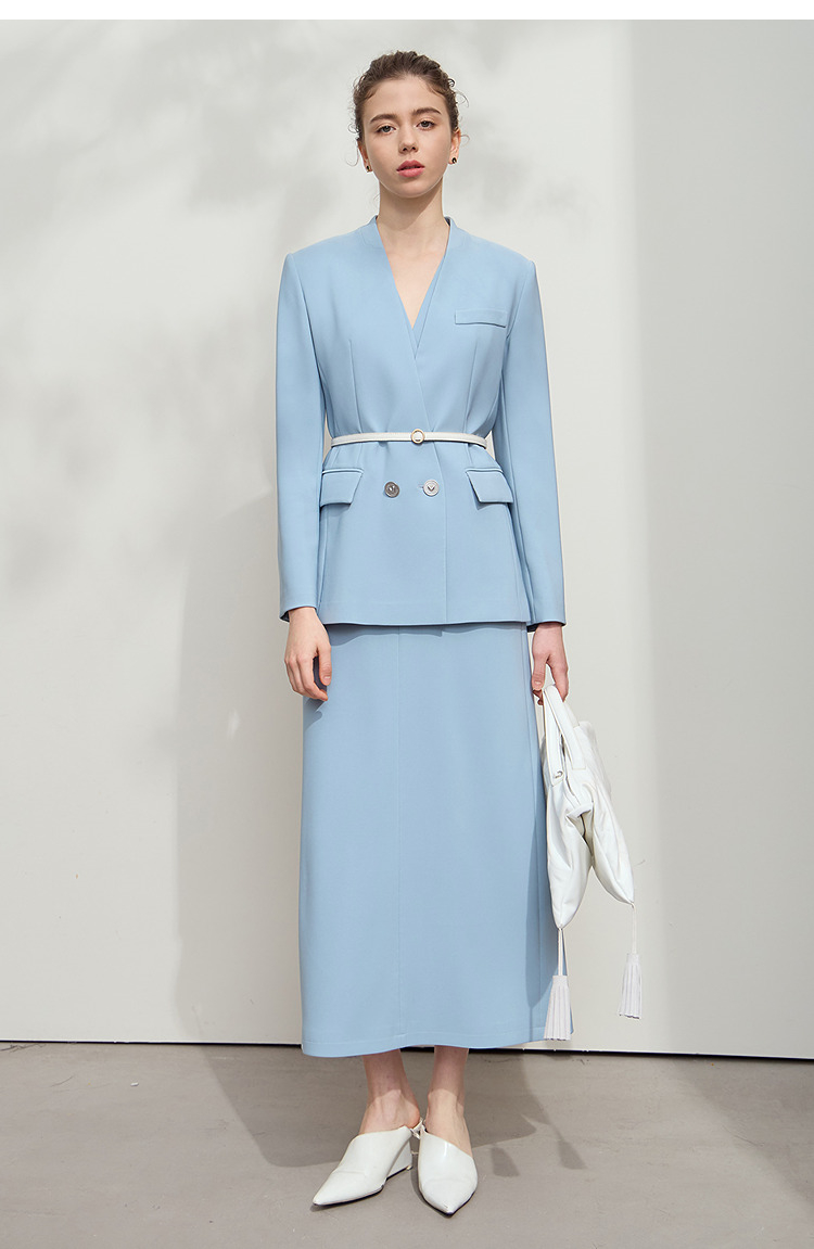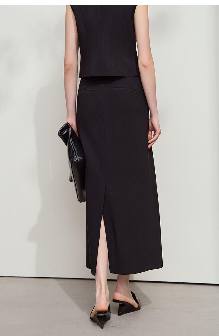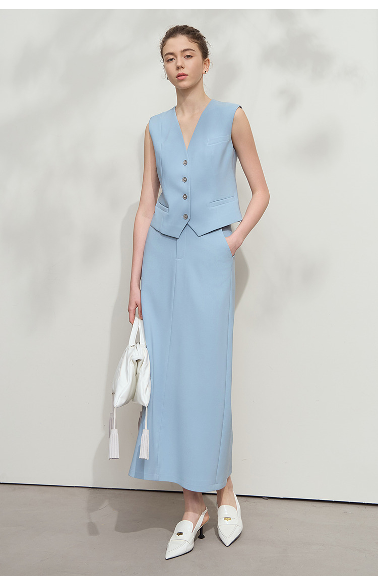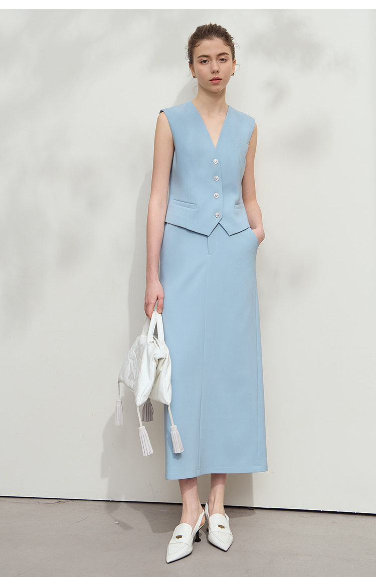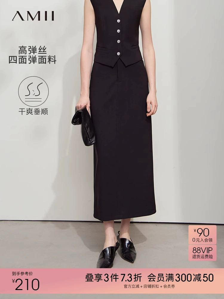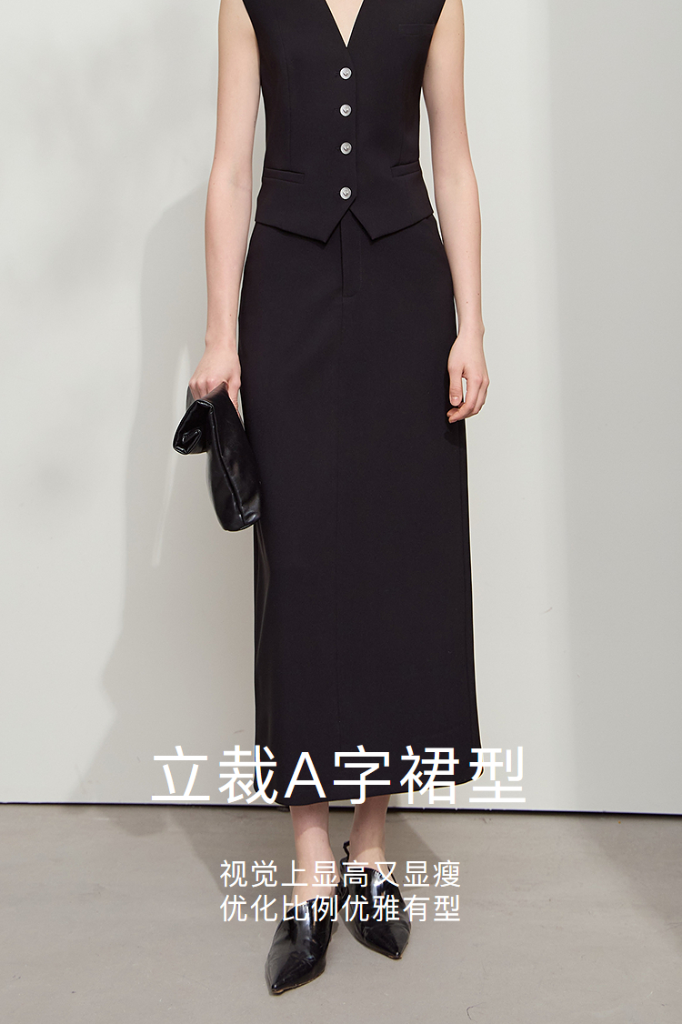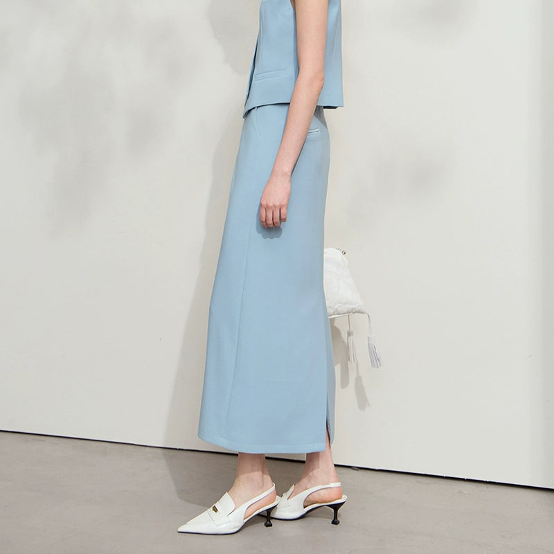Amii2025早秋新款高级通勤风后开叉长款半身裙女A字裙西装裙子 - 雾霾蓝 / 155/64A/S is backordered and will ship as soon as it is back in stock.
