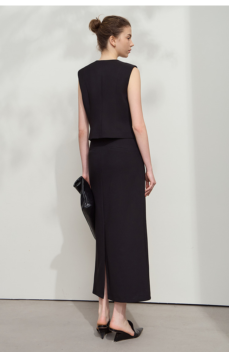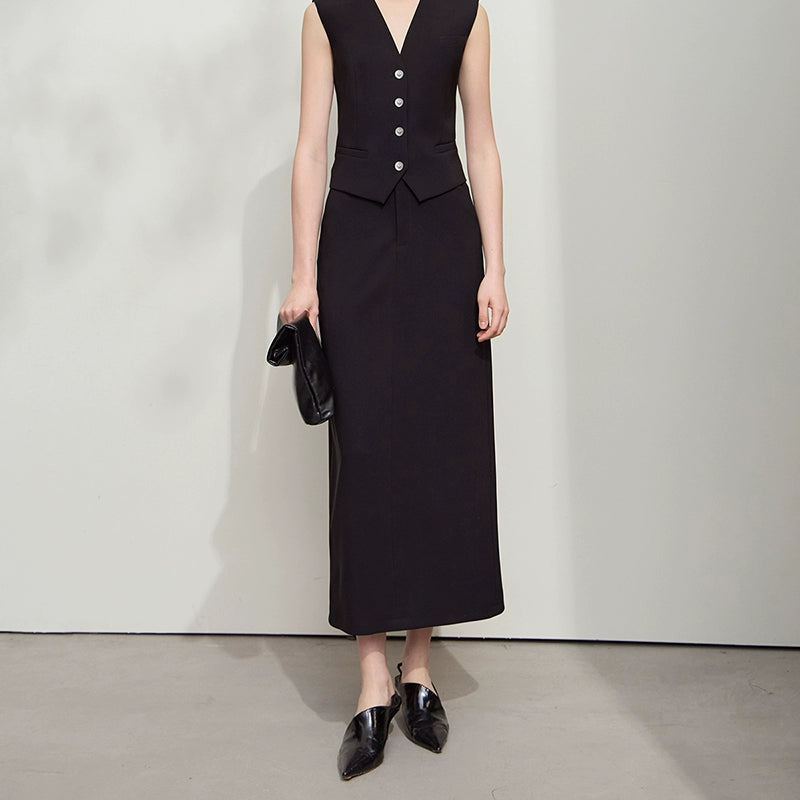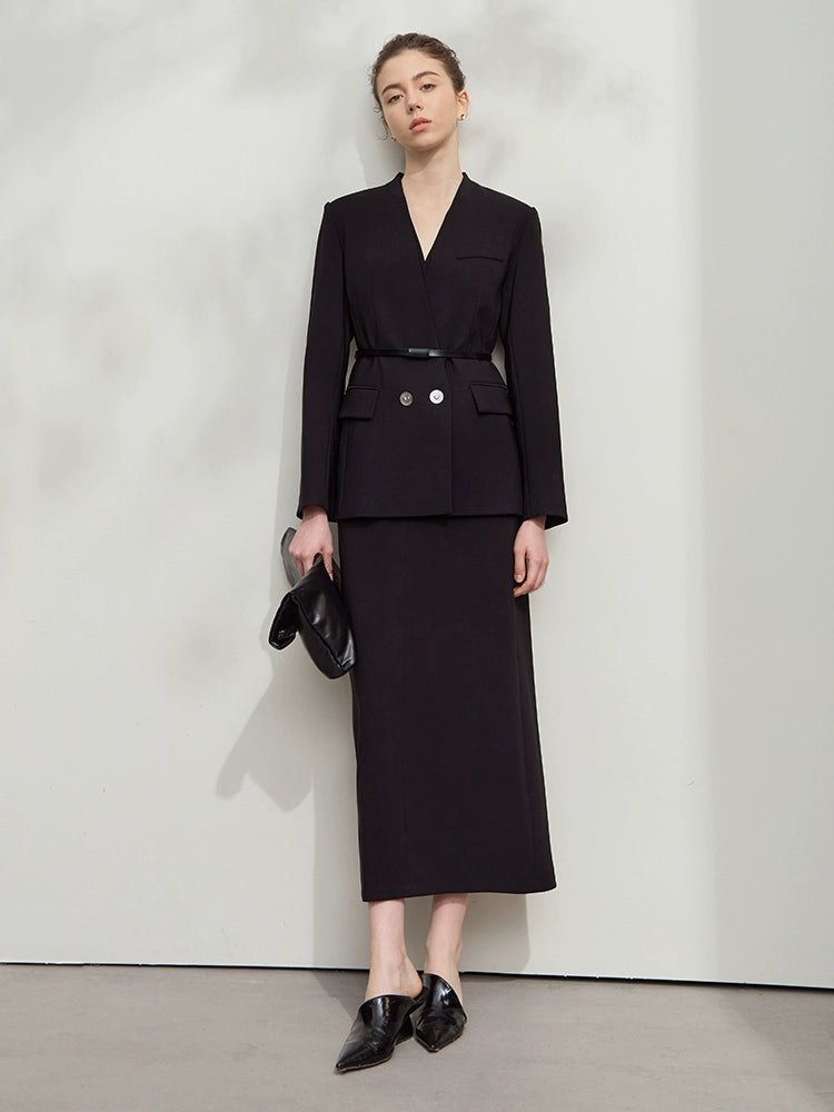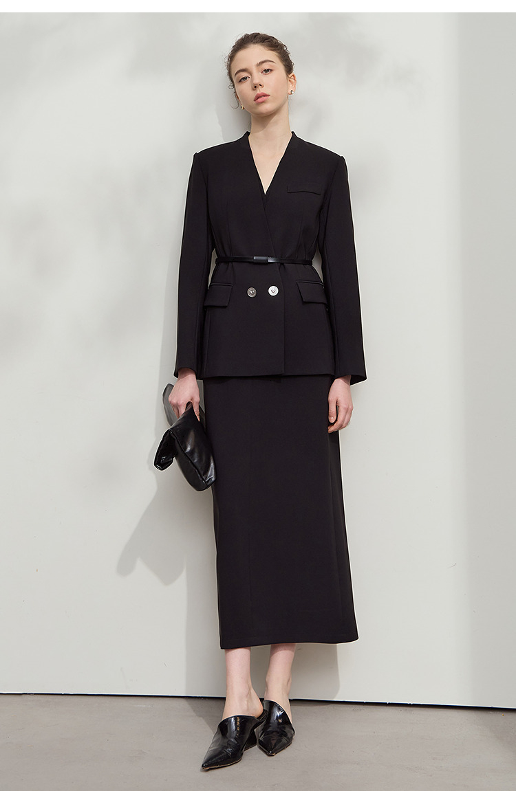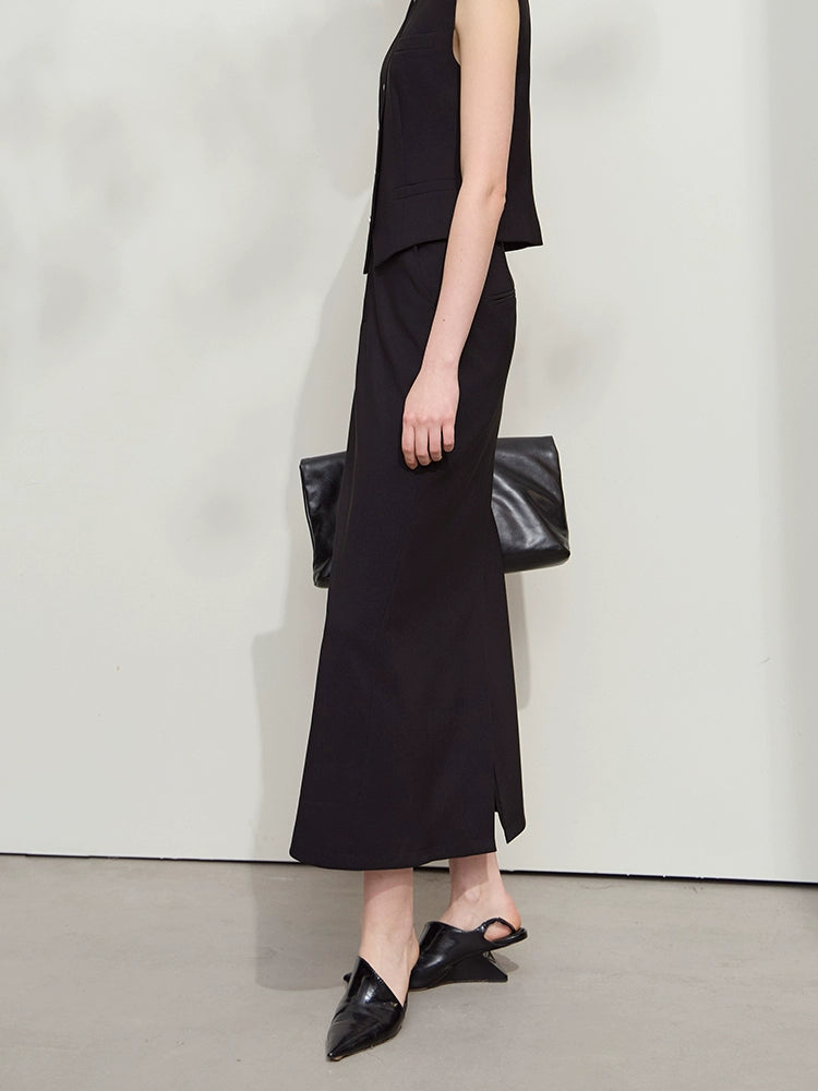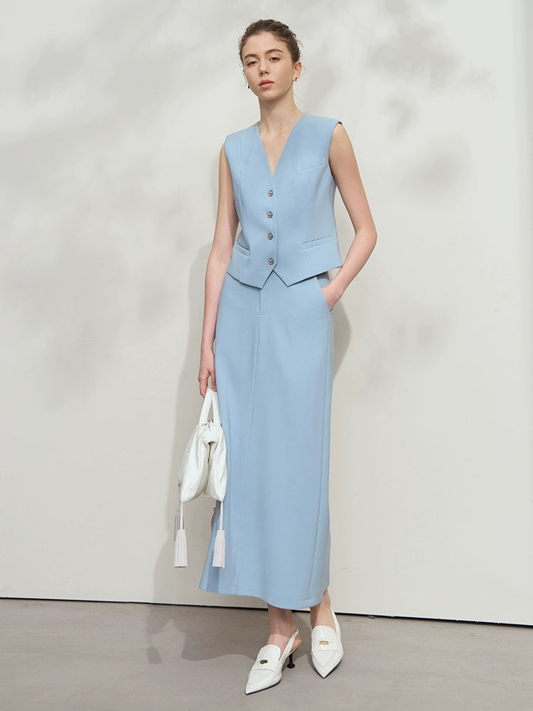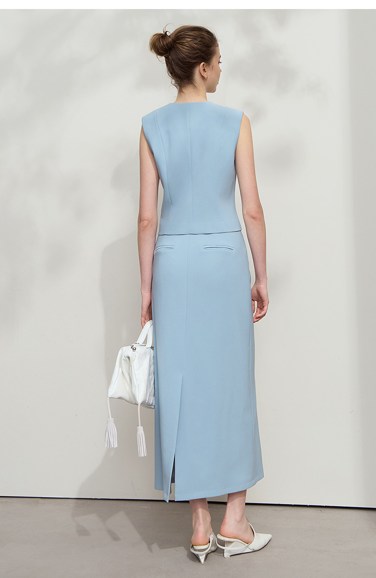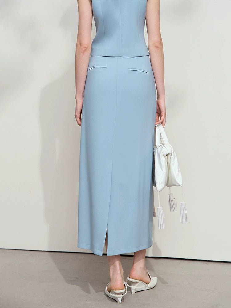 Amii2025早秋新款高级通勤风后开叉长款半身裙女A字裙西装裙子 - 雾霾蓝 / 155/64A/S is backordered and will ship as soon as it is back in stock.